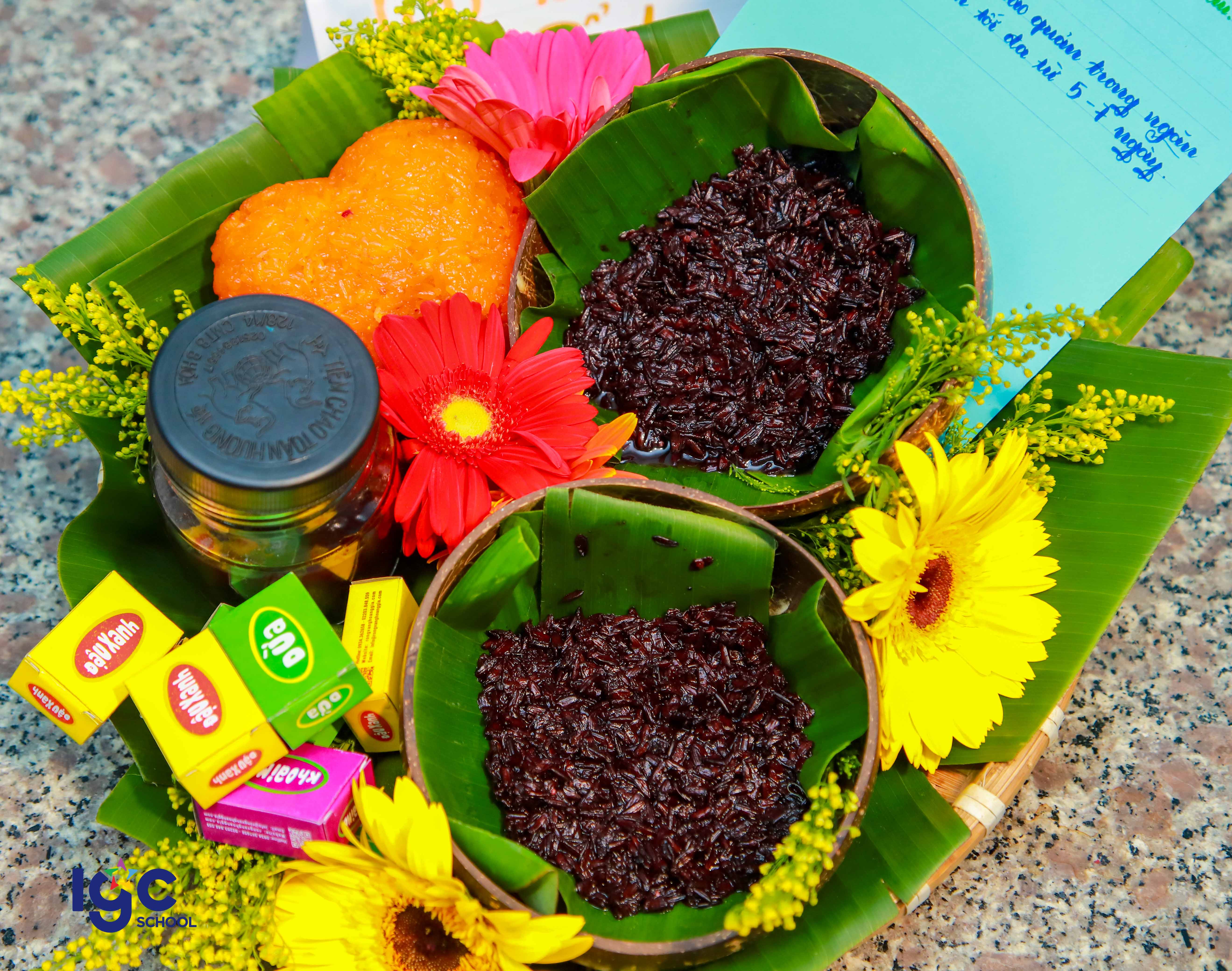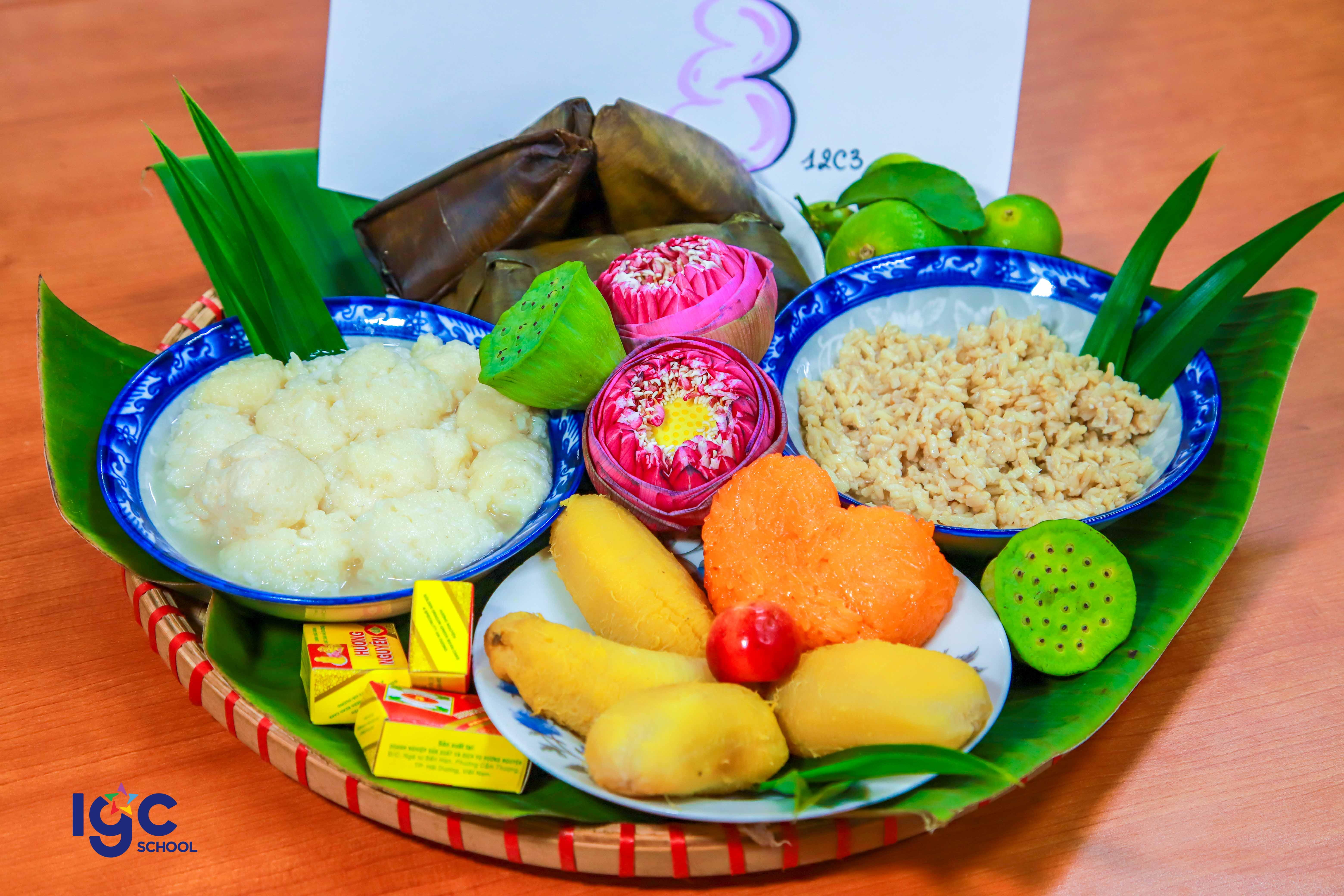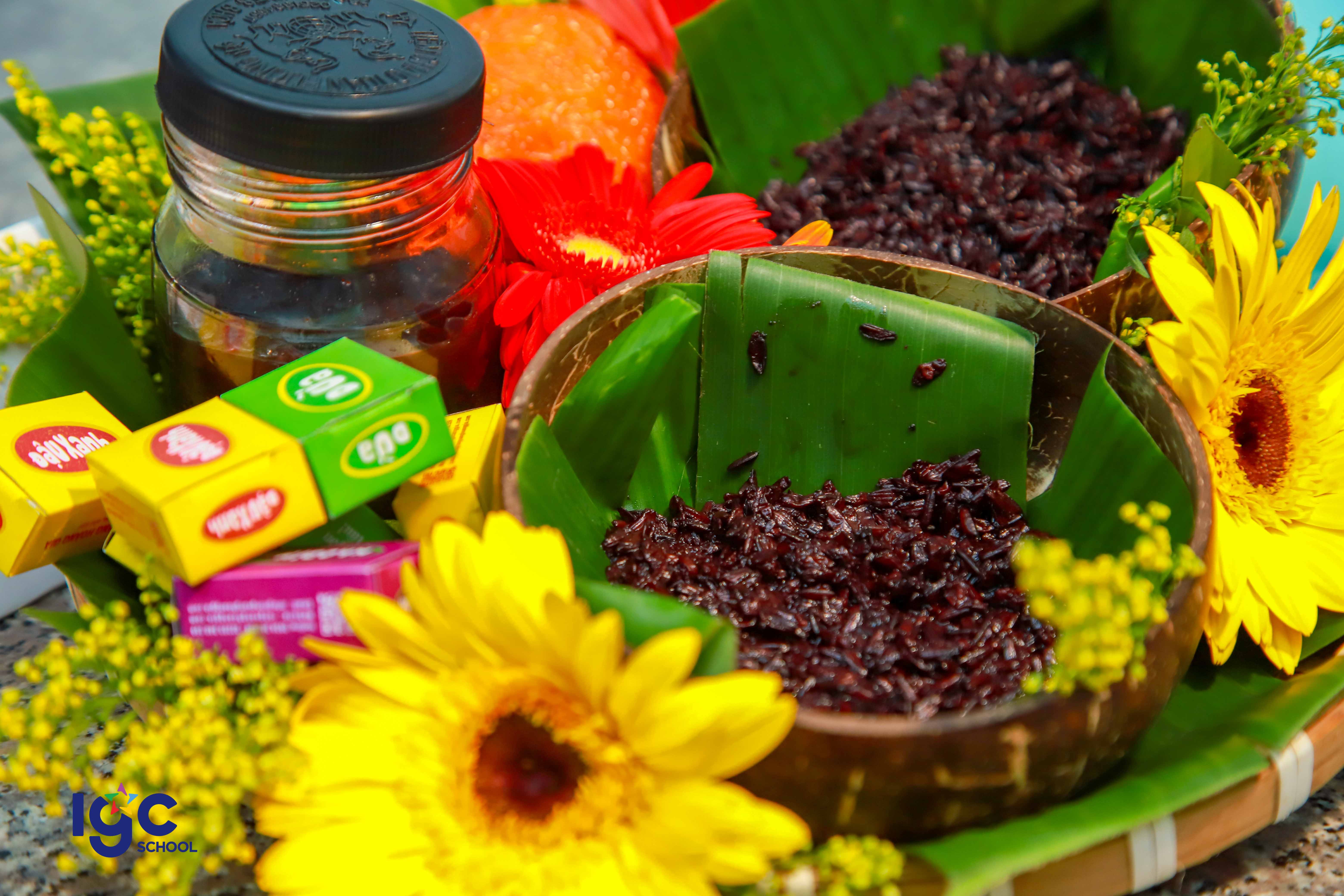 👉 Thông qua các tiết học môn Hóa, học sinh vừa ôn tập kiến thức vừa thực hành trải nghiệm qua các chủ đề như: + Ủ chín trái cây bằng phương pháp tự nhiên an toàn; nuôi con giấm, làm cơm mẻ.🍀 + Làm son handmade, làm dầu dừa, dầu gấc…🍀 👉 Cùng xem hình ảnh sản phẩm trải nghiệm làm cơm rượu và tìm hiểu ý nghĩa, trưng bày mâm cỗ ngày Tết Đoan Ngọ của các bạn học sinh nhé.