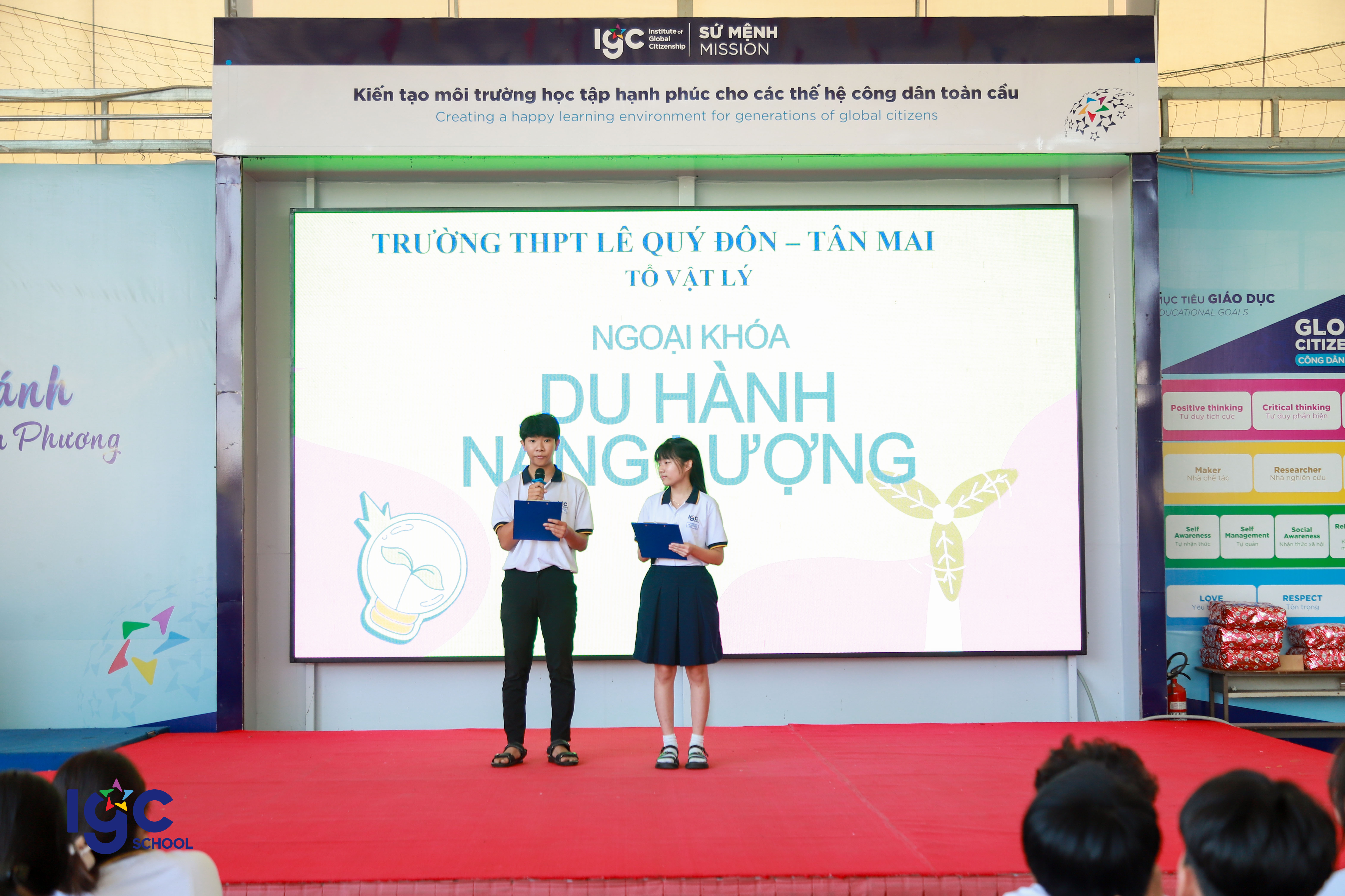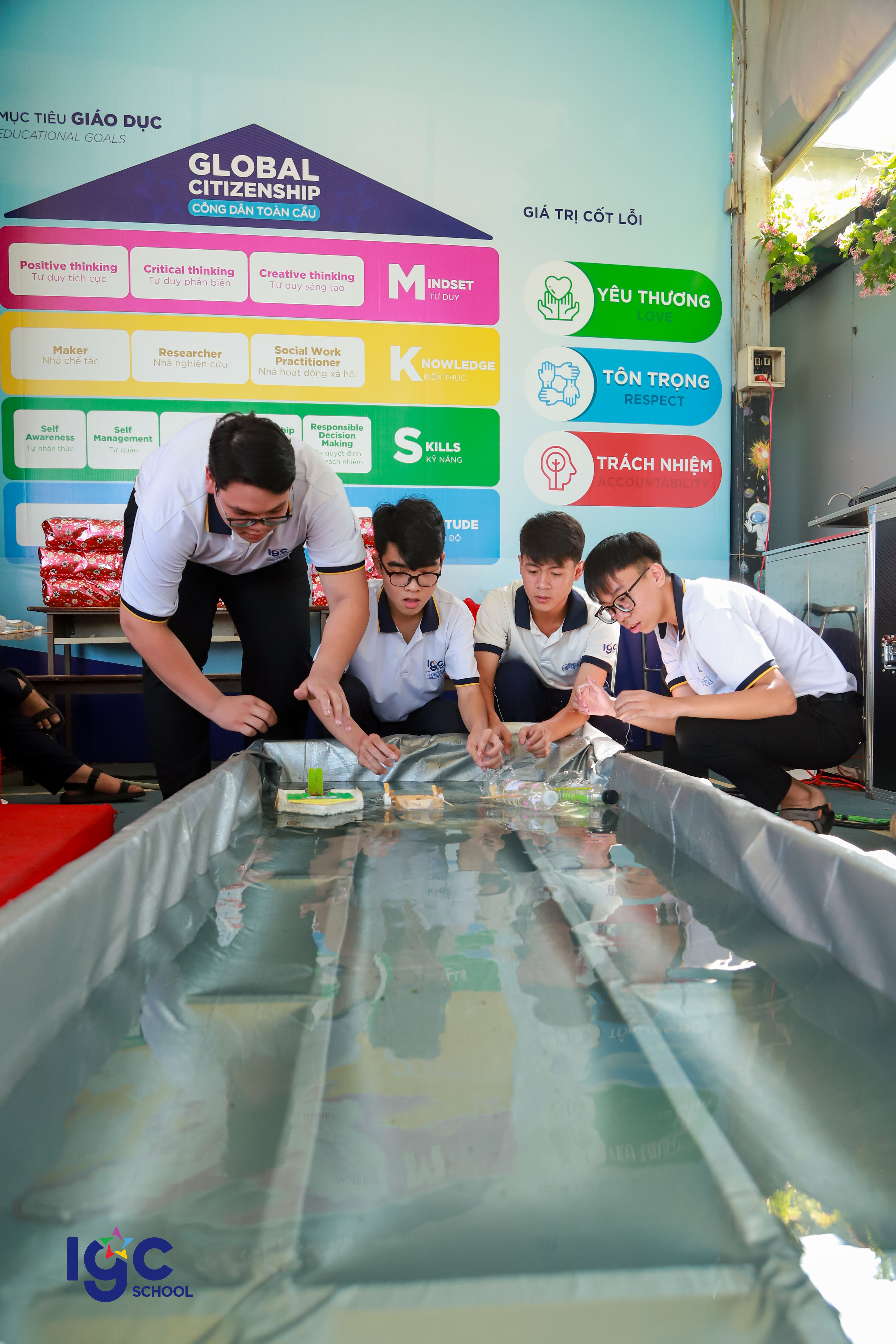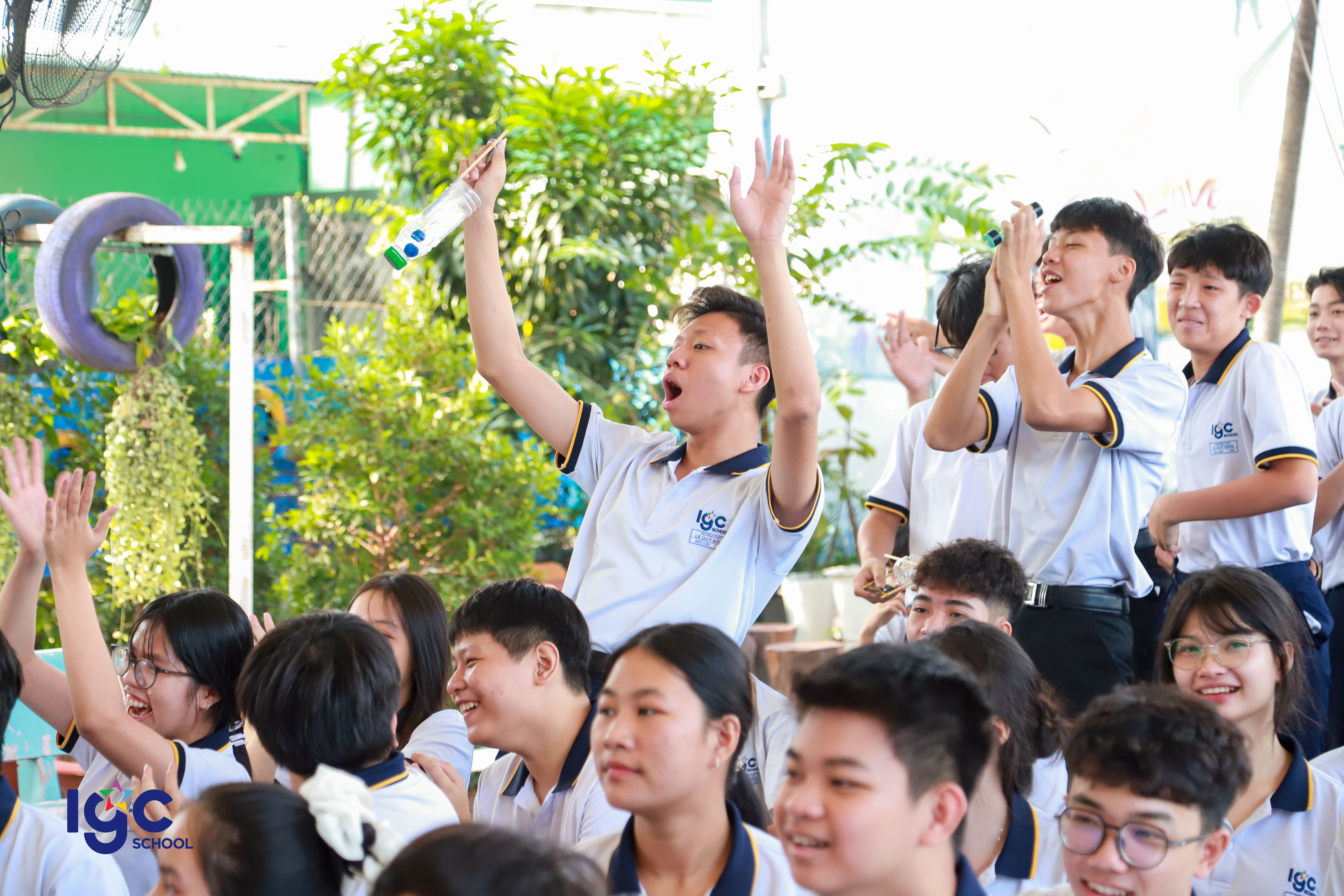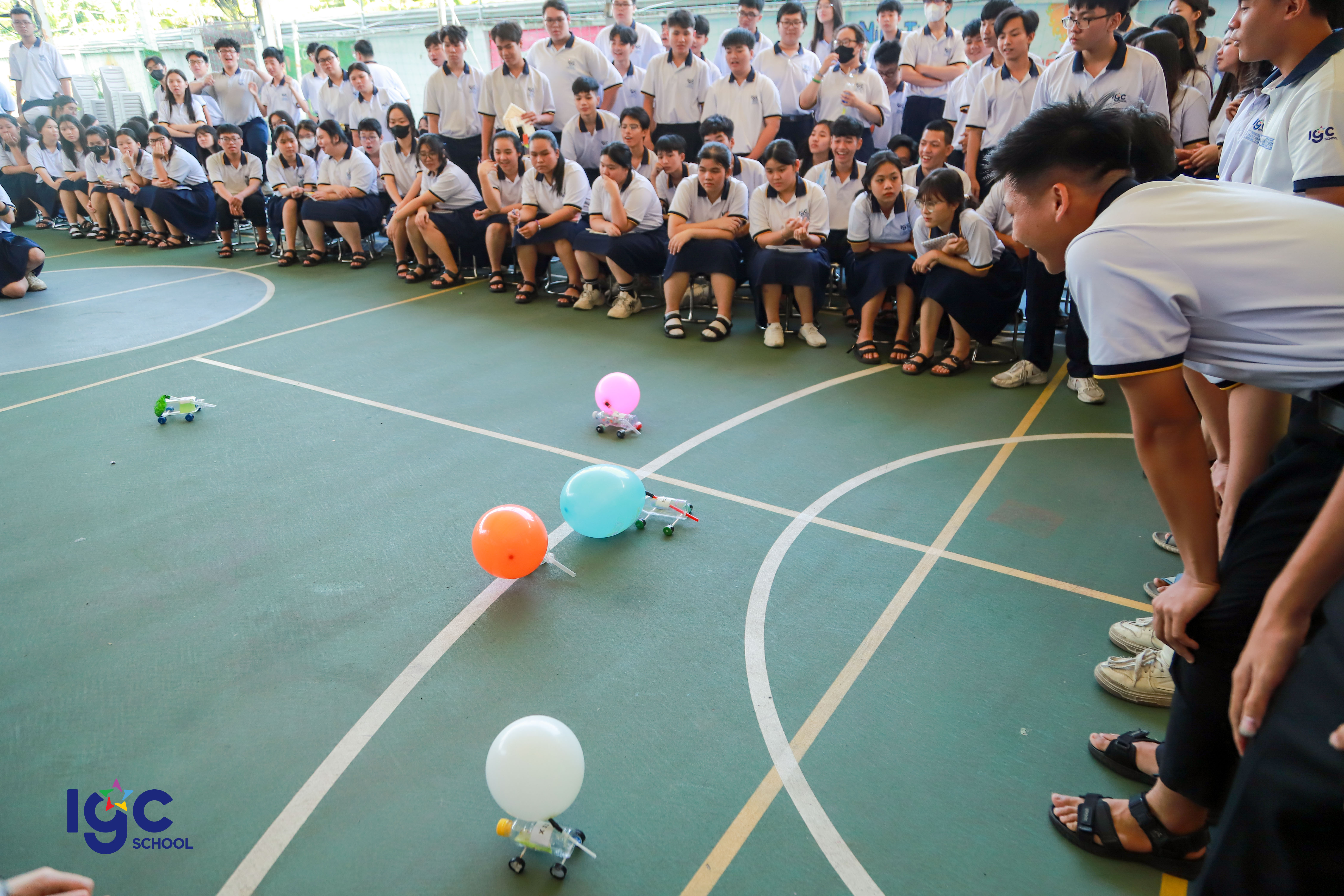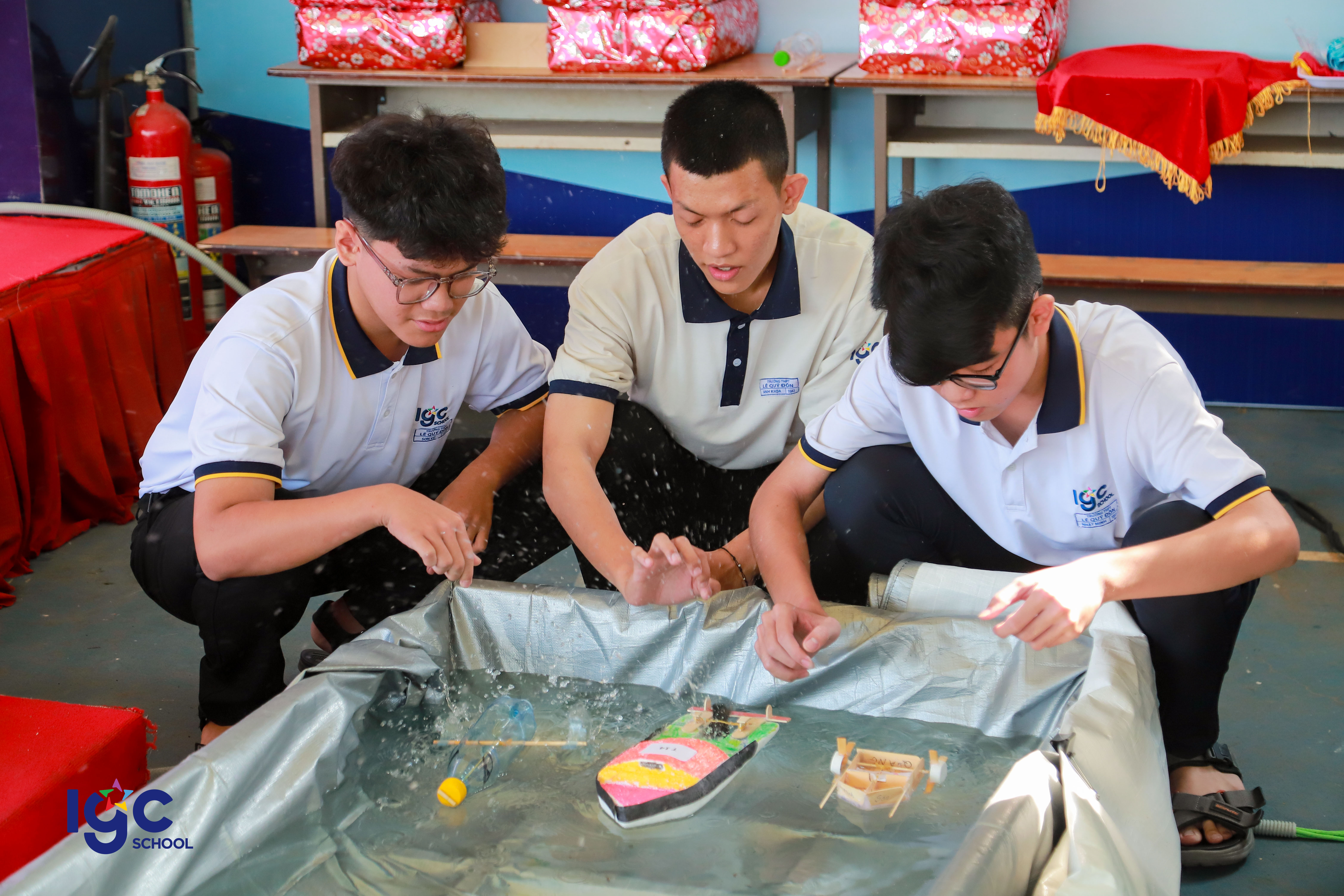 Với chủ đề "Du hành năng lượng", học sinh khối 10 đã có cơ hội khám phá và ứng dụng kiến thức Vật lý vào thực tiễn thông qua các hoạt động trải nghiệm đầy hấp dẫn! **Đua xe bong bóng**: nơi các bạn học sinh tự thiết kế và chế tạo những chiếc xe sử dụng nguyên lý phản lực của khí để di chuyển. **Đua thuyền**: thử thách sáng tạo với những chiếc thuyền nhỏ do chính tay học sinh làm ra, vận hành dựa trên nguyên tắc xoắn của dây chun làm cho cánh quạt quay tạo ra lực đẩy thuyền chạy trên mặt nước . **Mở túi mù – Giải câu hỏi**: một thử thách bất ngờ yêu cầu học sinh vận dụng tư duy nhanh nhạy, kiến thức Vật lý để vượt qua chướng ngại vật. **Các bạn học sinh đã có một hành trình khám phá năng lượng đầy sáng tạo và bổ ích. Đây không chỉ là một buổi ngoại khóa mà còn là cơ hội để các bạn rèn luyện kỹ năng làm việc nhóm, tư duy khoa học và khả năng sáng tạo.