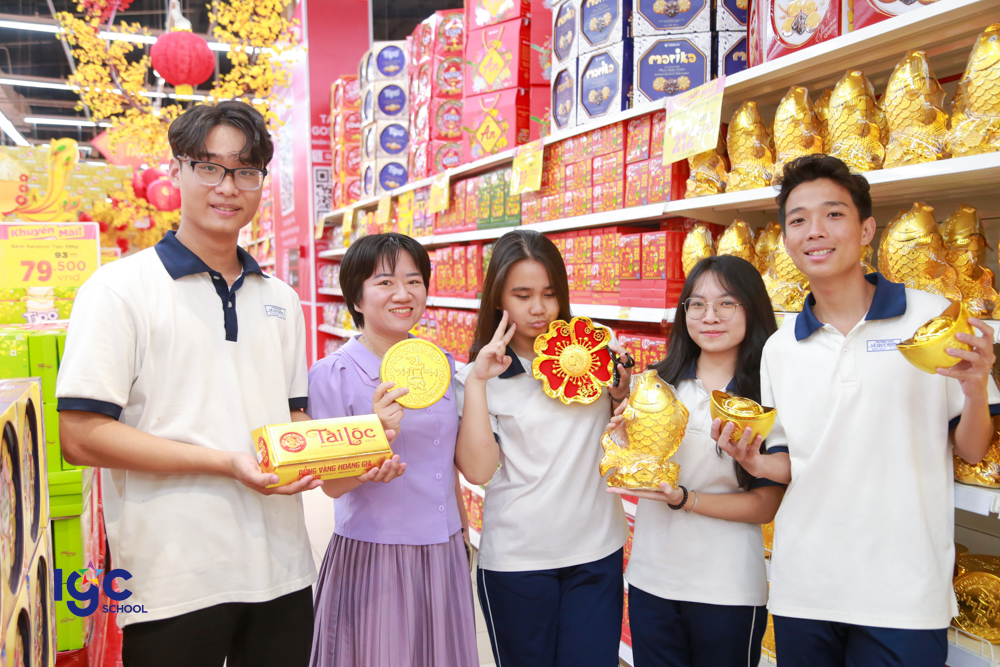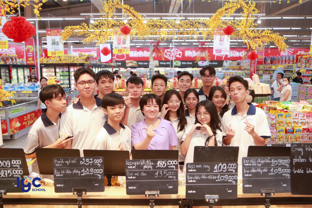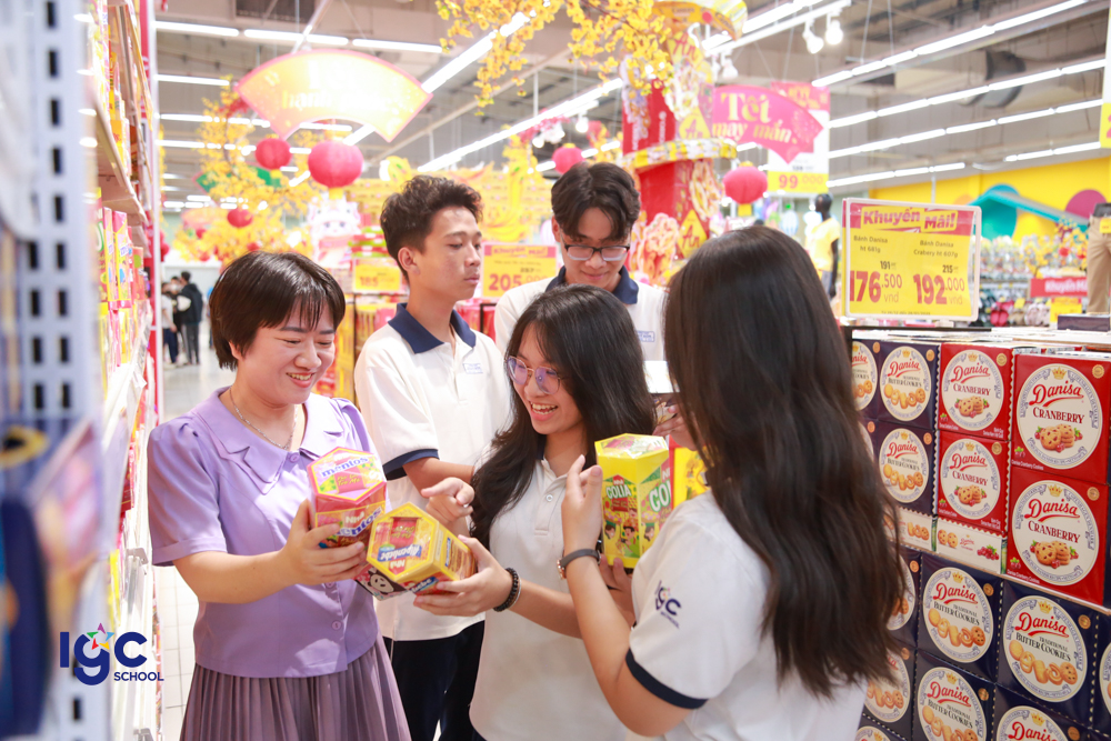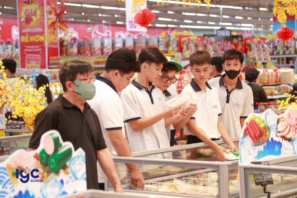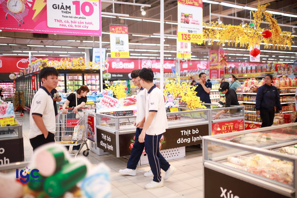 Sau đó, đoàn tiếp tục hành trình đến siêu thị GO! Tân Hiệp, học sinh được trải nghiệm môi trường thực tế của một hệ thống bán lẻ hiện đại. Các em tìm hiểu cách phục vụ khách hàng, bày trí tại siêu thị và còn thực hiện kỹ năng tính toán, lập kế hoạch mua sắm thông minh. Hoạt động này giúp các em tiếp nhận vai trò của kiến thức kinh tế và kỹ năng sống trong đời thực.