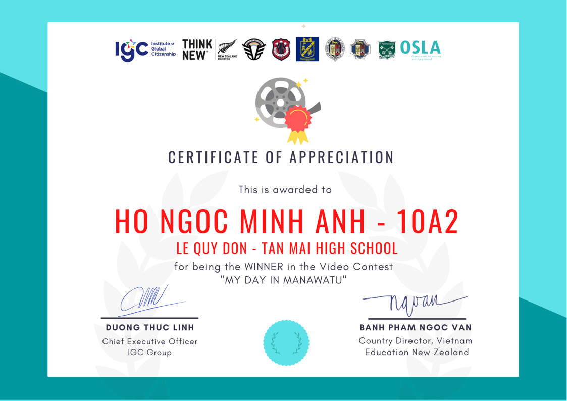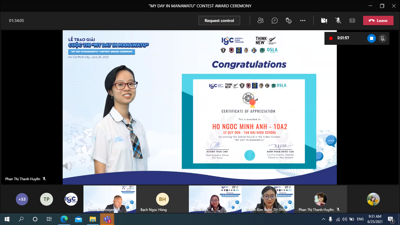 Cuộc thi "My day in Manawatu" đã diễn ra với hình thức trực tuyến trên Microsoft Teams. Cuộc thi do Tập đoàn Giáo dục IGC phối hợp Cơ quan Giáo dục New Zealand, Công ty Osla và các trường Manawatu - New Zealand đồng tổ chức. Đây là sân chơi để học sinh nâng cao khả năng ngôn ngữ, tìm hiểu văn hóa về đất nước New Zealand và có cơ hội theo học tại các trường tại vùng Manawatu.